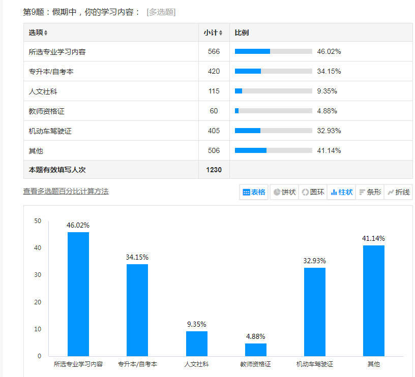 本次调研共收集1300余份有效调查问卷,数据丰富,较为全面的反映了问题,有助于对学生的生活、思想状态进行研判分析。经过调研发现,很多同学在这个假期中自觉提升,有约80%的学生在新学期制定了学习计划,有超过75%的学生对于升本、考研有新的学业规划。此次调研为我院接下来各项工作的开展提供宝贵的建议,使得学院可以更好的了解同学们的心中所想,为学院后续的积极发展奠定基础。