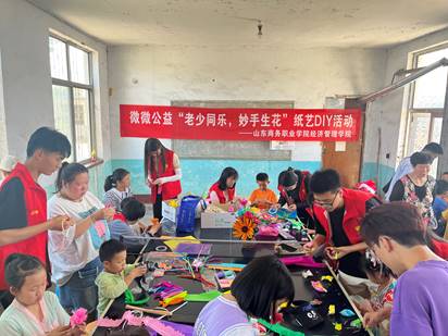 为了给留守儿童提供发展兴趣爱好的平台丰富课余生活,提升孩子们的幸福感,提高其动手能力、创造能力,培养其家国情怀和爱国热情,山东商务职业学院微微公益志愿服务组织26名志愿者奔赴新添堡村,联合新添堡村村党委会开展了以“红绿同行,微爱成炬”为主题的留守儿童帮扶活动。