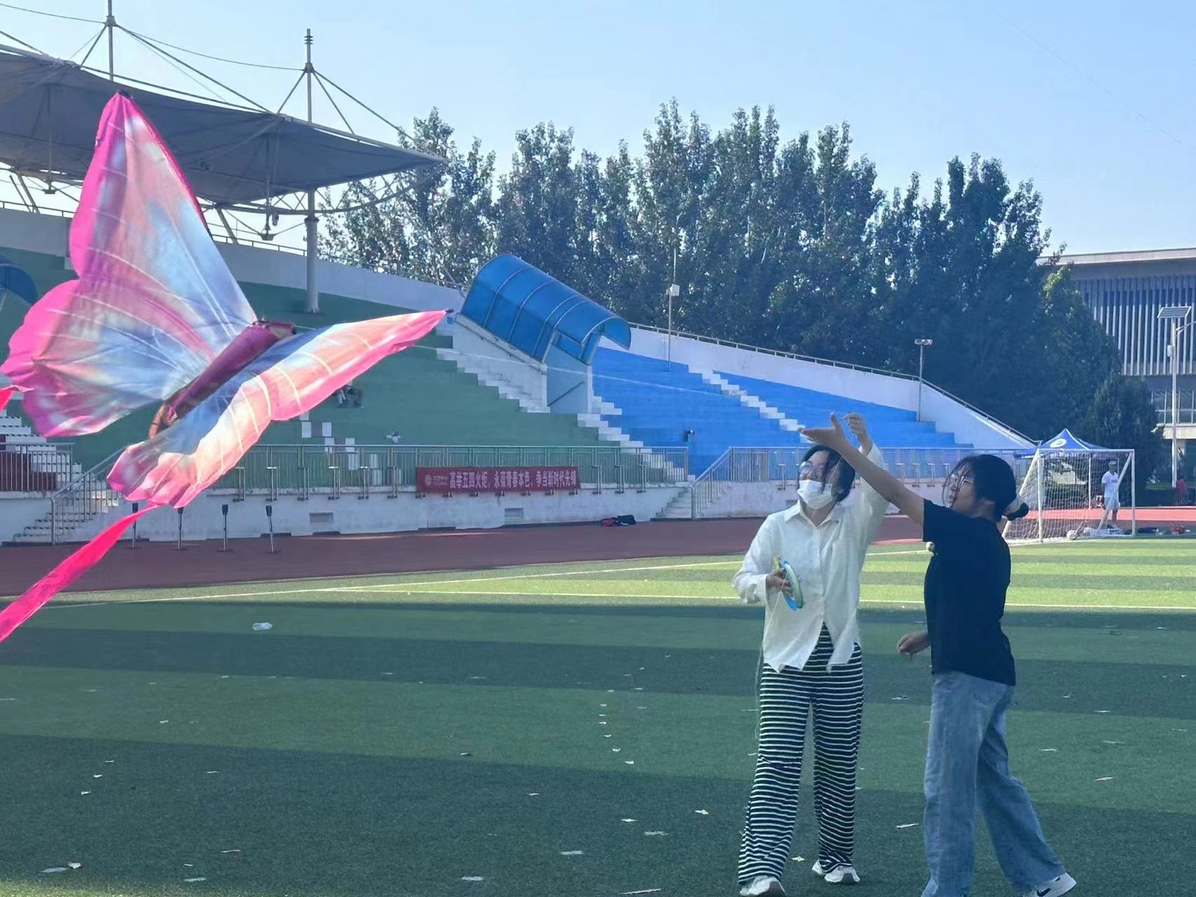 “放飞梦想,心随风动”放风筝趣味活动。活动从同学们的“艺术创作”开始,蘸上颜料,画笔涂抹,同学们在风筝上留下鲜艳的色彩,或是勾勒喜欢的图案,或是写下对未来的憧憬。当五彩缤纷的风筝在空中翩翩起舞时,它们不仅装点了蔚蓝的天空,也承载着每位同学对未来的美好憧憬。