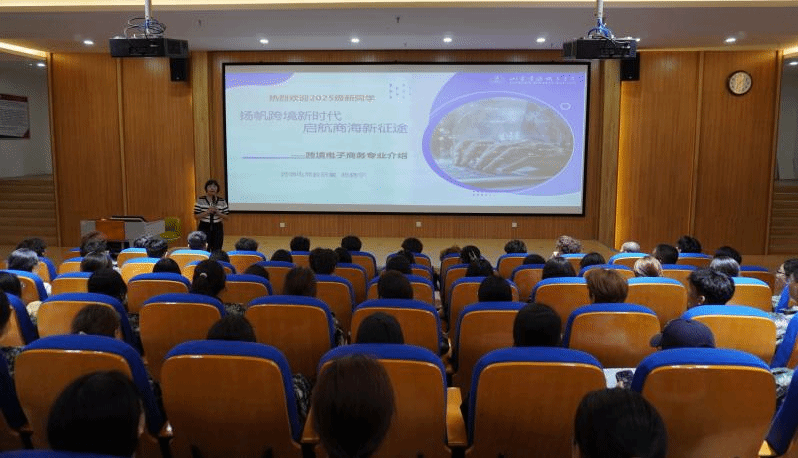 在跨境电子商务专业介绍活动中,学院副院长李蕊向2025级新生表示欢迎,详细介绍跨境电子商务的发展现状与广阔就业前景,让新生直观感受专业价值。