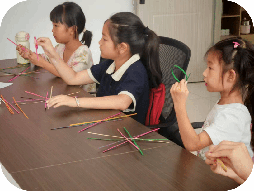 课程伊始,柳编非遗传承人于老师从柳条选材的诀窍讲起,逐步演示了从拧编、编织到最终点缀的完整工艺流程。只见柔韧的柳条在他指间翻飞穿梭,伴随着娴熟的编织动作,一件精美的柳编作品逐渐呈现立体形态。孩子们全程凝神注目,生怕错过任何一个细节,在老师行云流水的示范中感受到传统手工艺的严谨与精妙。这种直观的教学方式,让抽象的非遗知识变得生动可感。
