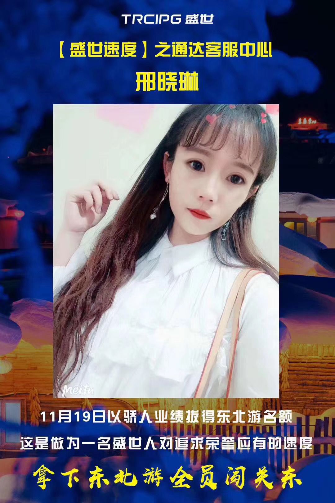 邢晓琳,女,经济管理系市场营销协会会长,于2019年7月毕业于山东商务职业学院市场营销专业,工作单位为盛世集团互联网公司,在工作期间获得年度“一年耀”的徽章,年度突出贡献奖,年度不负韶华奖,海外六日游奖励,以及公司股票奖励,短短一年时间成为公司的小股东,更是公司的每个月的的销售冠军。