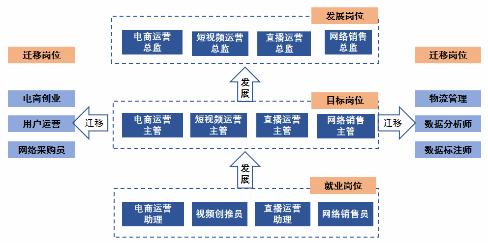 专业培养能够践行社会主义核心价值观,传承技能文明,德智体美劳全面发展,具有一定的科学文化水平,良好的人文素养、科学素养、数字素养、职业道德、创新意识,爱岗敬业的职业精神和精益求精的工匠精神,较强的就业创业能力和可持续发展的能力,掌握本专业知识和技术技能,具备职业综合素质和行动能力,面向互联网和相关服务、零售业、粮食行业的电商运营主管、短视频运营、直播运营、网络营销主管等岗位(群),能够从事数据化运营、网店运营、视频创推、直播运营、营销活动策划与执行、销售方案执行与优化等工作的高技能人才。