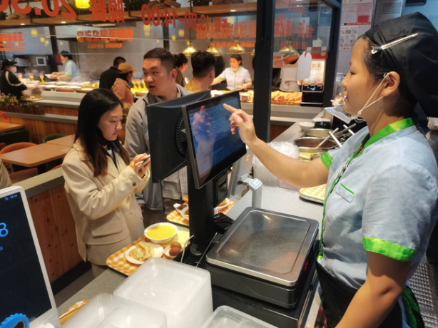 实习伊始,两位同学怀揣着好奇与热情,来到分配的蓝白自选餐厅毓璜顶店。在这里,她们首先迎来了内容丰富的入职培训。从餐饮服务的基本礼仪,如微笑的尺度、引导顾客的手势,到后厨操作的规范流程,包括食材的处理、菜品的烹饪要点等,每一个环节都有专业的师傅耐心讲解示范。她们认真聆听,不时举手提问,力求将每一个要点都牢牢记住,并做好了迎接实践考验的准备。