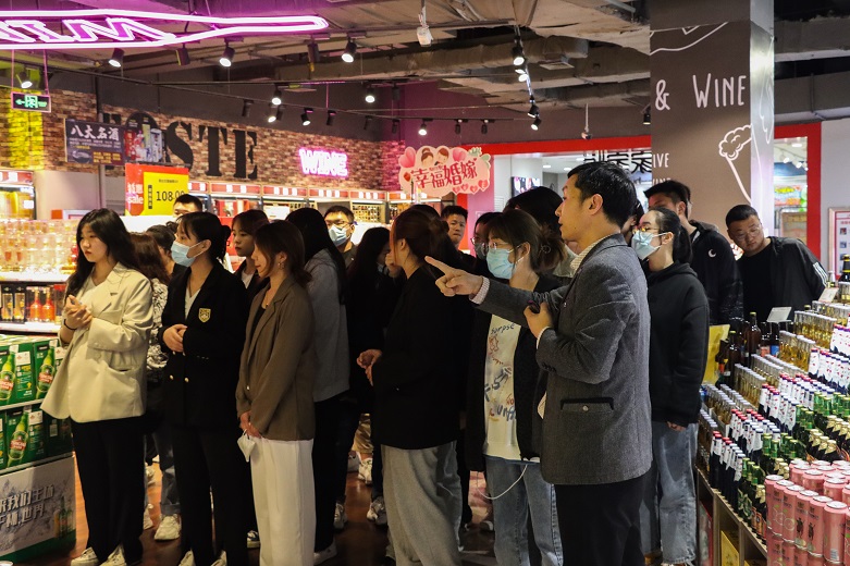 5月12日下午,经济管理学院19级连锁经营管理专业的学生在谢慧老师、王羽老师的带领下前往山东家家悦超市(烟台万达店)进行参观学习。