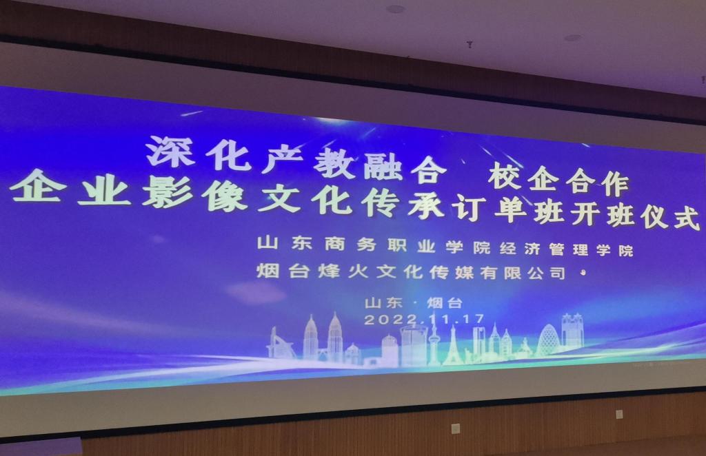 11月17日,经济管理学院与烟台烽火文化传媒有限公司在现代商务创新示范基地举行了隆重的“企业影像文化传承”订单班开班仪式。烽火文化传媒的荆有年、朱玉彤等企业领导,经管学院连锁经营与管理专业的教师及订单班的全体学生参加了开班仪式。