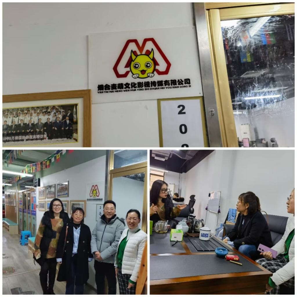 孙琳副院长一行先后参观了烟台麦萌文化影视传媒有限公司、汇集星烟台网络科技有限公司,详细了解了企业运营、人才需求等情况,并与企业总经理、运营总监、跨境电商负责人、A 类电商负责人等座谈交流。