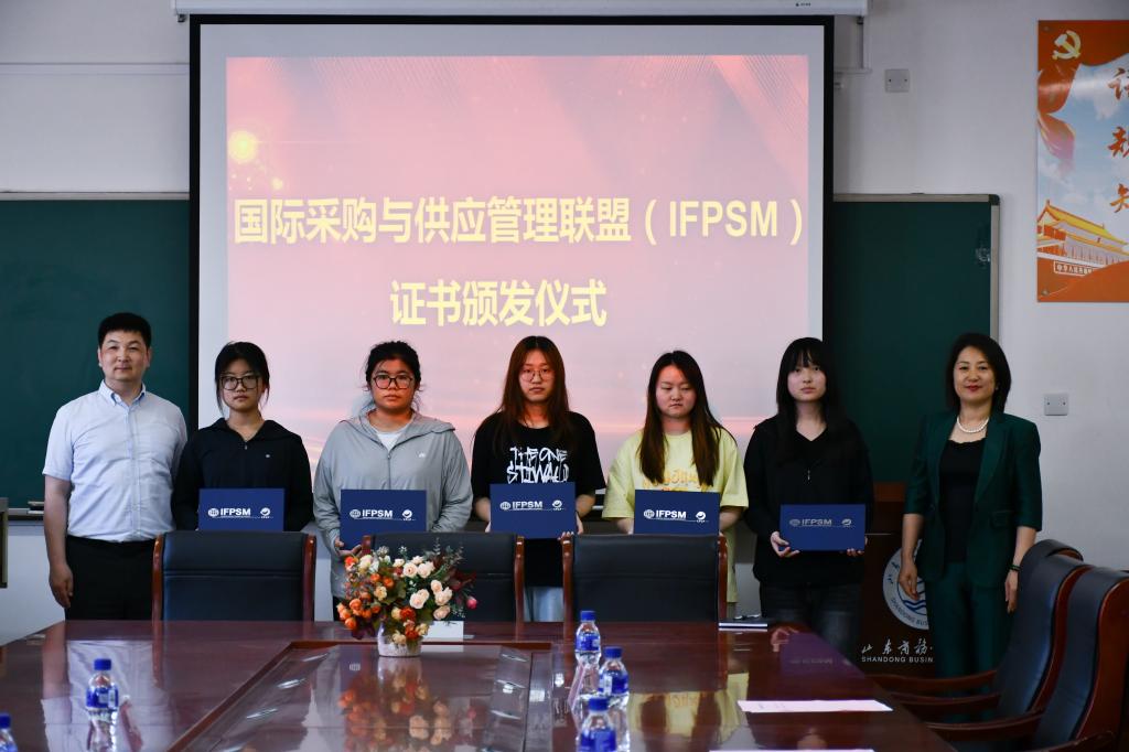 活动伊始,中国物流与采购联合会研发与创新办公室主任黄颖、经济管理学院党总支书记范彩荣、副院长李蕊为现代物流管理专业40名学生代表颁发了国际采购与供应管理联盟(IFPSM)证书。