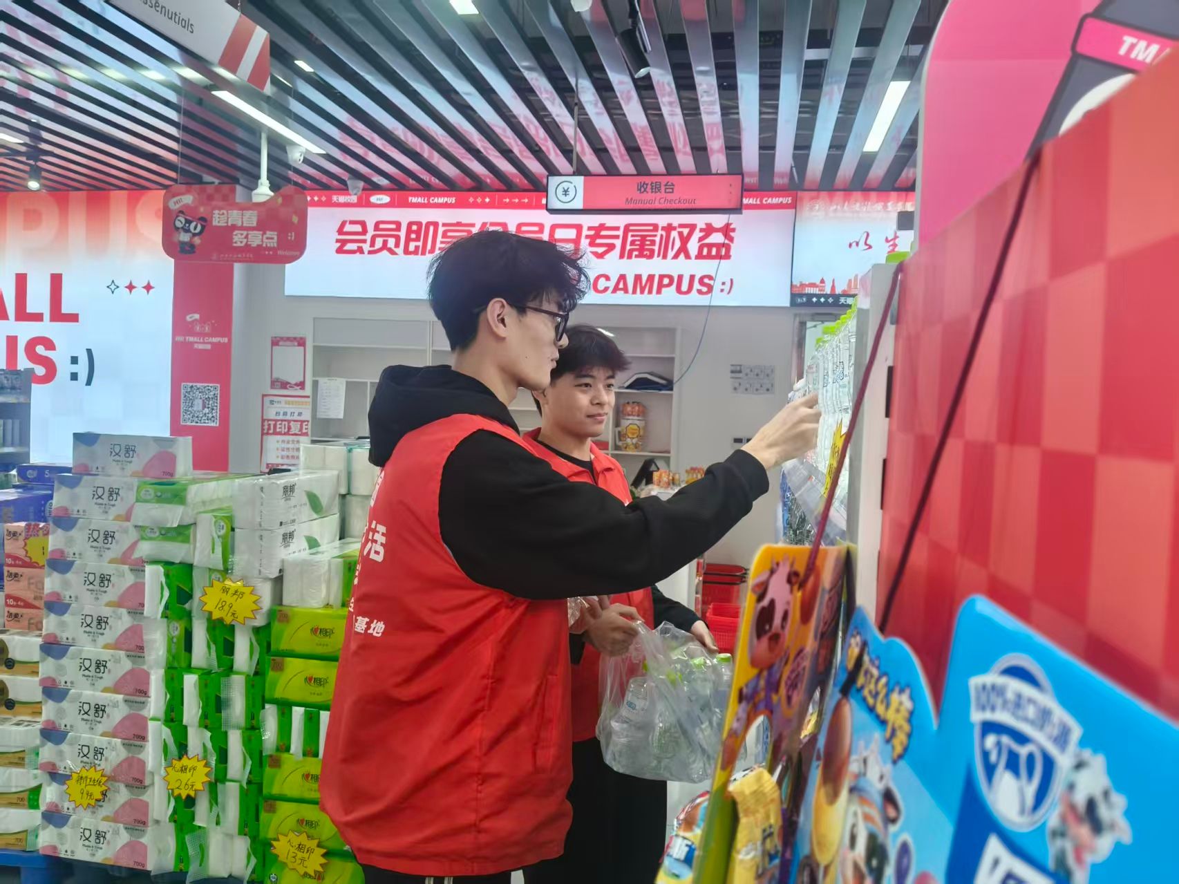 该产教融合实践基地由经济管理学院与阿里巴巴天猫超市共同建设,于2025年正式投入运营,是“阿里巴巴数字贸易产业学院”的核心教学实践平台,基地占地约600平方米,不仅设有休闲食品区、饮料水品区、生活用品区等满足在校师生日常需求的实体区域,更是一个集大数据分析、精准营销于一体的智慧教学工坊,是深化产学研合作、创新人才培养模式的重要载体。