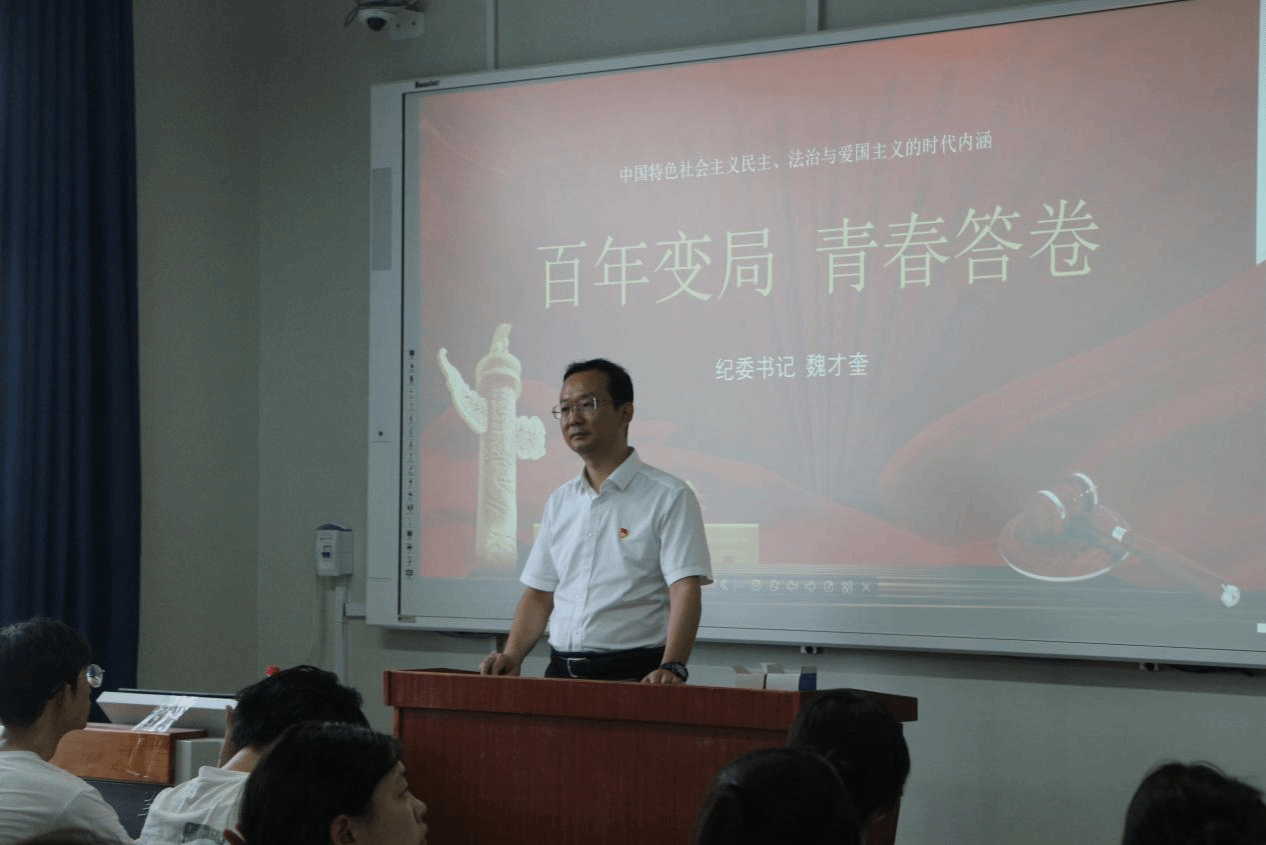 7月1日下午,学校党委委员、纪委书记魏才奎走进经济管理学院,以《百年变局 青春答卷》为题,引导经管学子在深刻理解时代大势中找准人生坐标,交出无愧于时代的青春答卷。