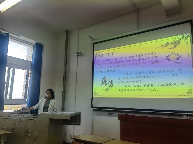 10月25日,经济管理学院教师党支部召开“学习传统文化 传承红色基因 发扬清廉之美”廉政教育主题党课,本次党课由范彩荣书记主持。党课中,范彩荣书记从传统文化中体现廉洁精神的代表作品、传统文化中的廉洁精神和廉政措施、传统文化中廉洁精神的现代启示三个方面对廉洁和廉政进行了深刻解读。