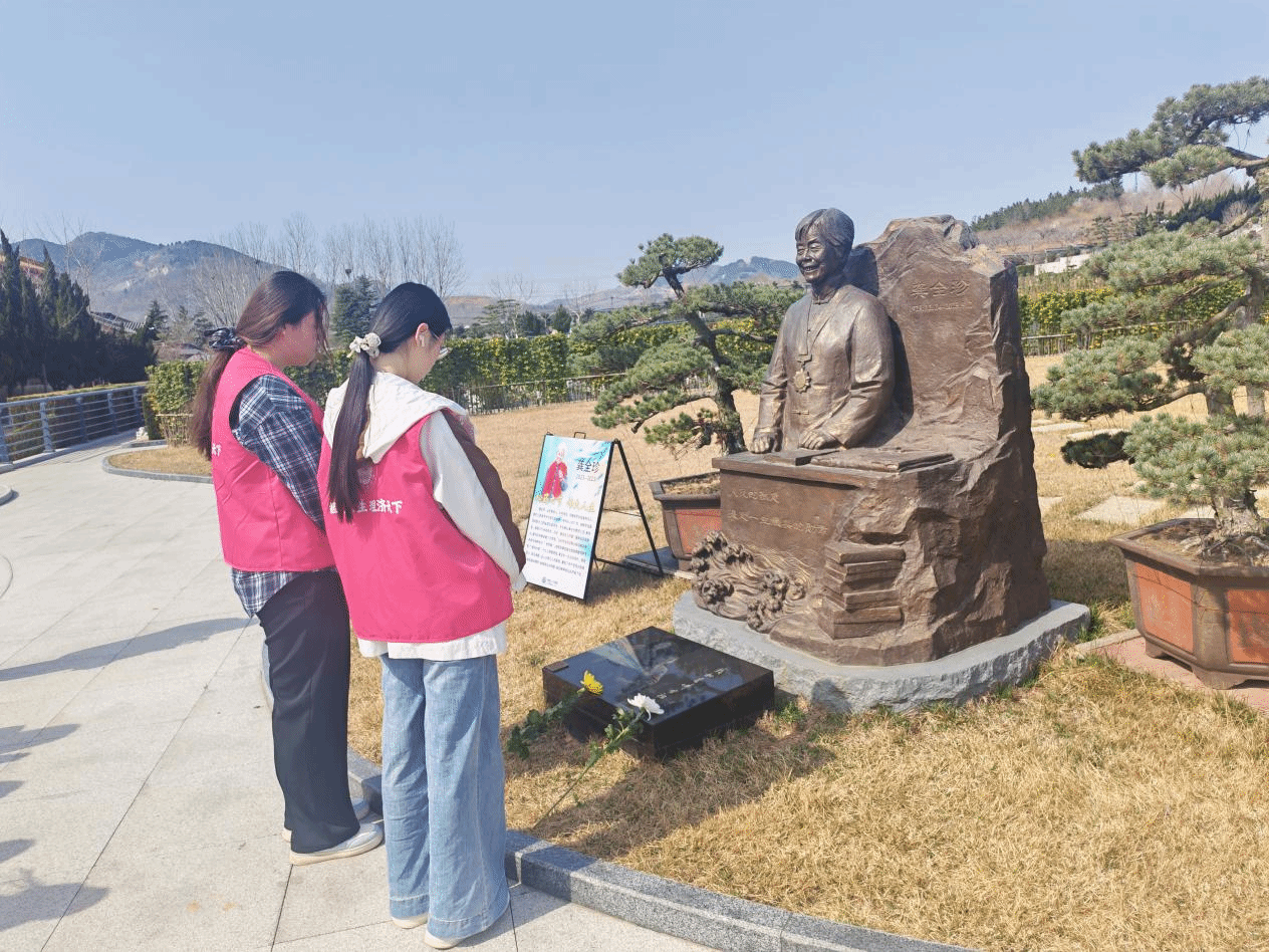 在瞻仰烈士纪念碑后,师生们来到“老阿姨”龚全珍同志雕像前。通过现场讲解,同学们深入了解了她从青春投身革命到一生扎根教育、无私奉献的感人事迹。“从战火纷飞到教书育人,龚全珍同志用一辈子诠释了什么是‘革命理想高于天’,什么是‘把一切献给人民’。”现场负责讲解的学生骨干感慨道。这种从硝烟战场到平凡岗位的精神传承,让经管学子直观理解了共产党人初心使命的历久弥新。同学们纷纷表示,将从英模事迹中汲取力量,把缅怀之情转化为勤奋学习、锤炼本领、服务社会的实际行动。