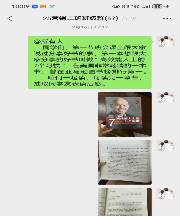 “一本好书,能照亮一段成长路。”在“共读一本书”环节,老师精心挑选聚焦奋斗与成长的经典书籍,将照片在班级群里共享。结束一章节后,采用分组研讨的形式,引导学生记录阅读感悟,分享书中打动自己的片段。还设置了“读书心得留言墙”,让大家写下最受触动的句子,形成满墙励志语录,营造出“爱读书、读好书、善读书”的浓厚氛围。