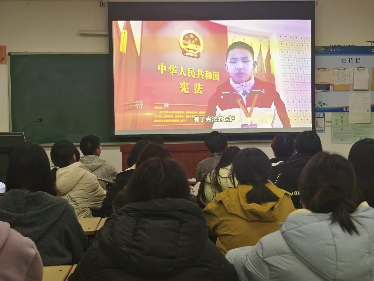 12月4日,学院组织2024级、2025级全体学生,通过教育部全国青少年普法网同步参与全国教育系统“宪法晨读”直播活动。同学们精神饱满,跟随直播齐声诵读宪法条文,在庄严的仪式感中体悟宪法权威与法治精神。当晚,学院还组织师生集中收看中央电视台社会与法频道播出的“宪法的精神 法治的力量——2025年度法治人物”专题节目,通过学习法治先进人物事迹,进一步激发师生尊法学法守法用法的自觉性和主动性。