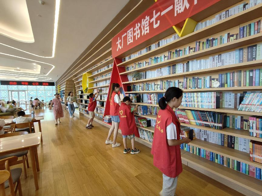 书香溢书馆,志愿暖人心。河北分队队员们来到了河北省廊坊市大厂县图书馆,图书馆在暑假期间因读者众多,面临着空间管理和资源分配的巨大挑战,志愿者们开展“图书馆大整理”活动,为知识的殿堂添砖加瓦,给小朋友们创造更优质的阅读环境,赢得了图书馆和阅读者的认可。