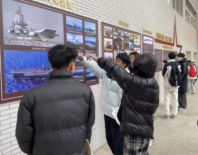 参观征兵文化走廊,激发逐梦军旅热情。为了让同学们更加直观地了解军队,学校征兵办负责老师带领大家参观了征兵文化走廊并以一名退伍老兵的身份讲述军队的故事,帮助大家更好地感受军队的浓厚氛围和军人的高尚品质,增强了同学们对部队的向往和对军人的崇拜。