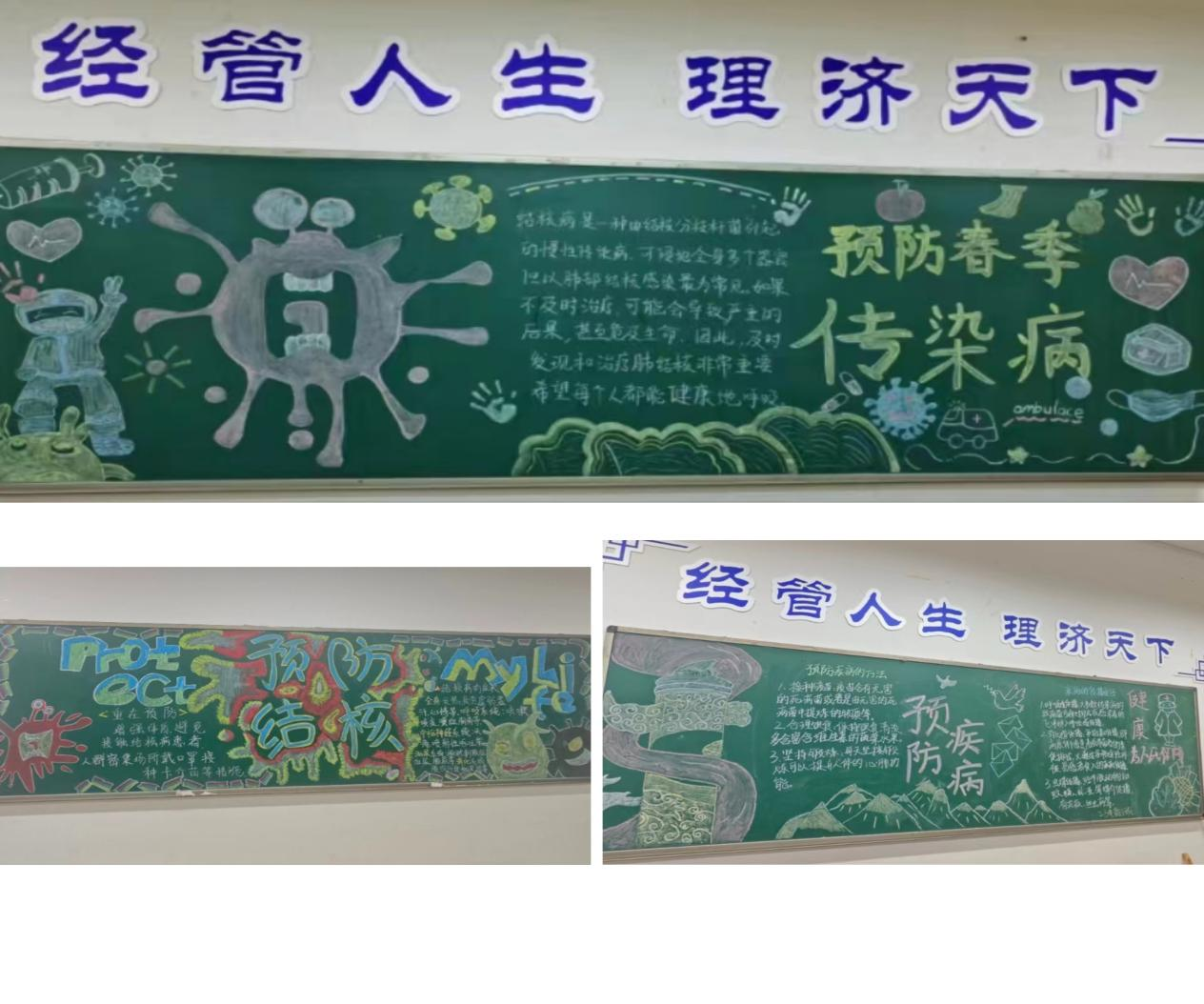 以画绘防,共筑健康校园。通过组织各班黑板报绘画竞赛的方式,展现春季高发传染病的类型、传播途径、预防措施等内容,提高经管学子对传染病的认知和防范意识,还能激发同学们的创作热情,增强经管学子的团队协作能力和健康素养,为构建健康、和谐的校园环境作出贡献。