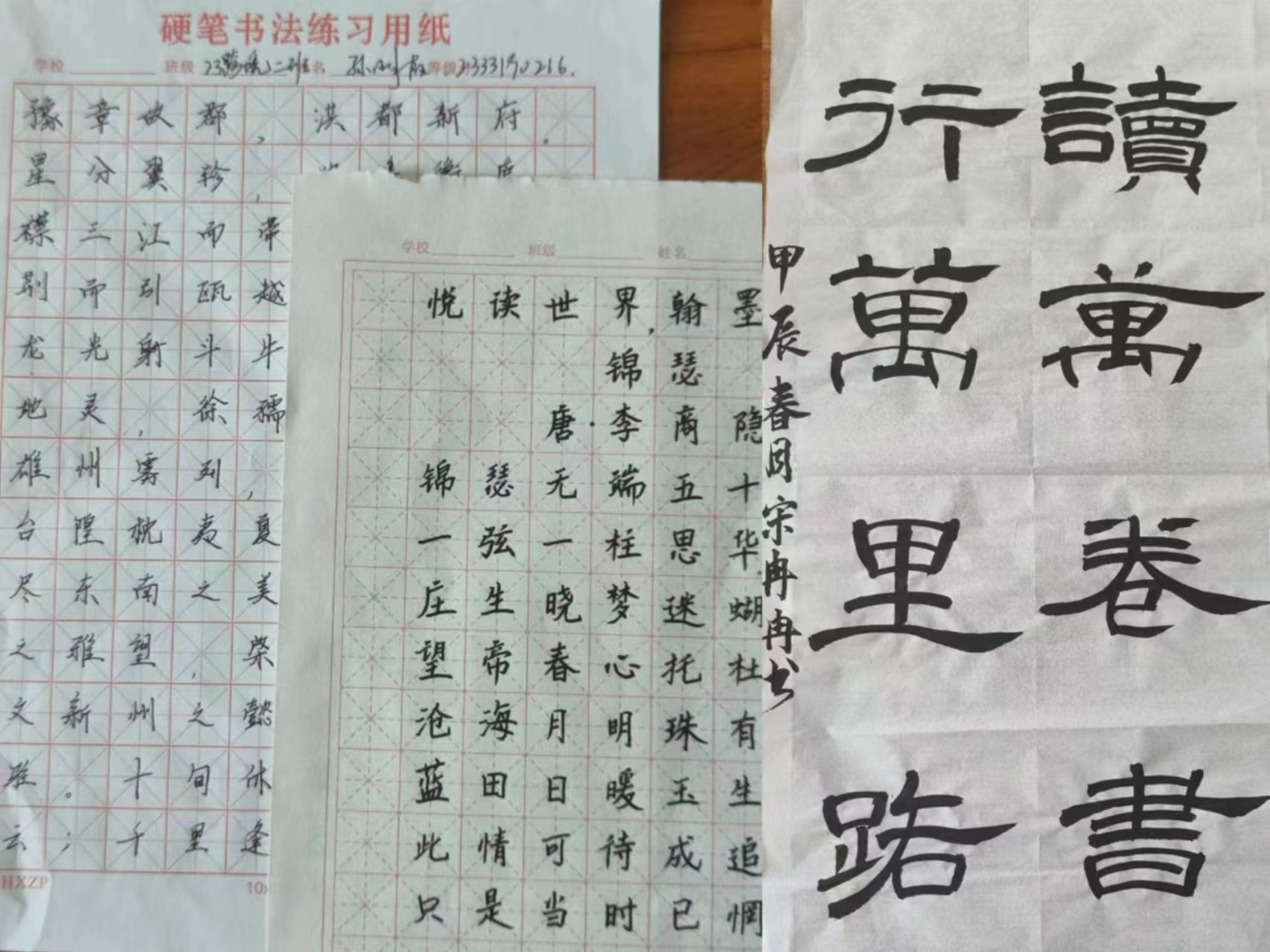 “悦读世界,翰墨飘香”优秀书法作品评选活动,为全体师生呈现了一场精彩的书法盛宴。一幅幅作品美观大方,或清秀雅致,或舒展开阔,或潇洒俊逸,这些优秀作品被一一呈现,无一不展示着书法作者深厚的文字底蕴,不断传承和发扬中华传统文化的精髓。