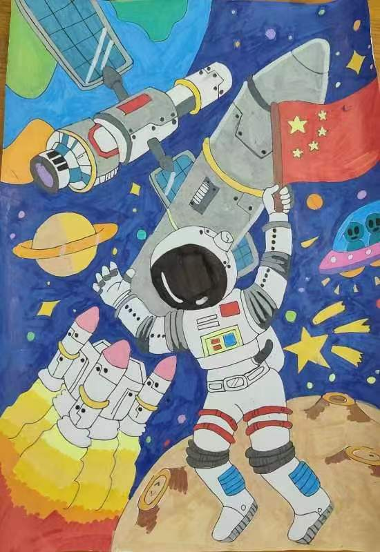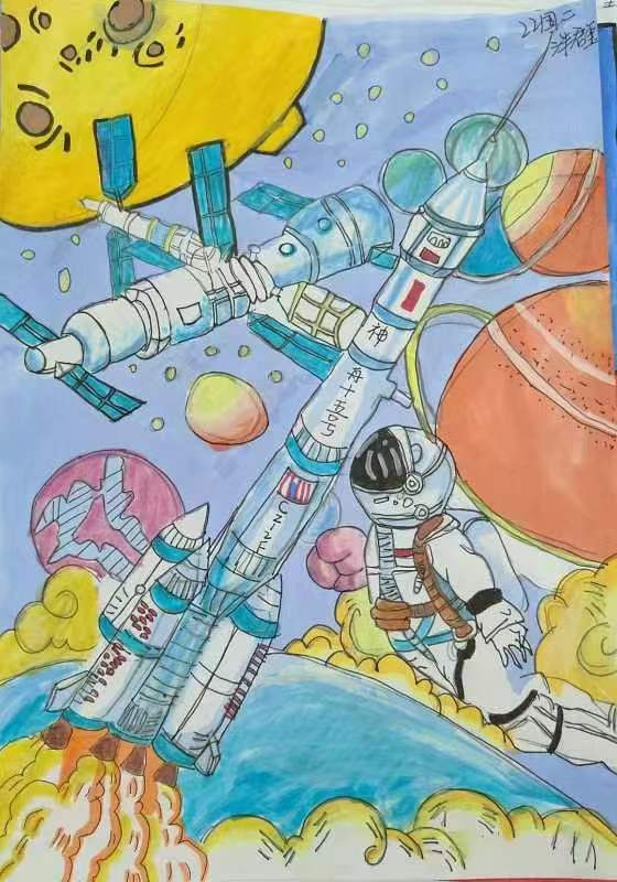 “筑梦航天,启航未来”航天日创意绘画大赛,通过艺术创作的形式,弘扬航天精神,激发青年学子对航天事业的热爱与追求。每一幅画都充斥着经管学子的思维想象能力,有的想象着乘“神舟十八号”载人飞船震撼升空,有的想象着搭乘热气球漫步云端,有的驾驶特技飞机空中起舞,还有的绘制出了未来航天器的模样,展现了新时代青年对未来航天事业的无限期待。