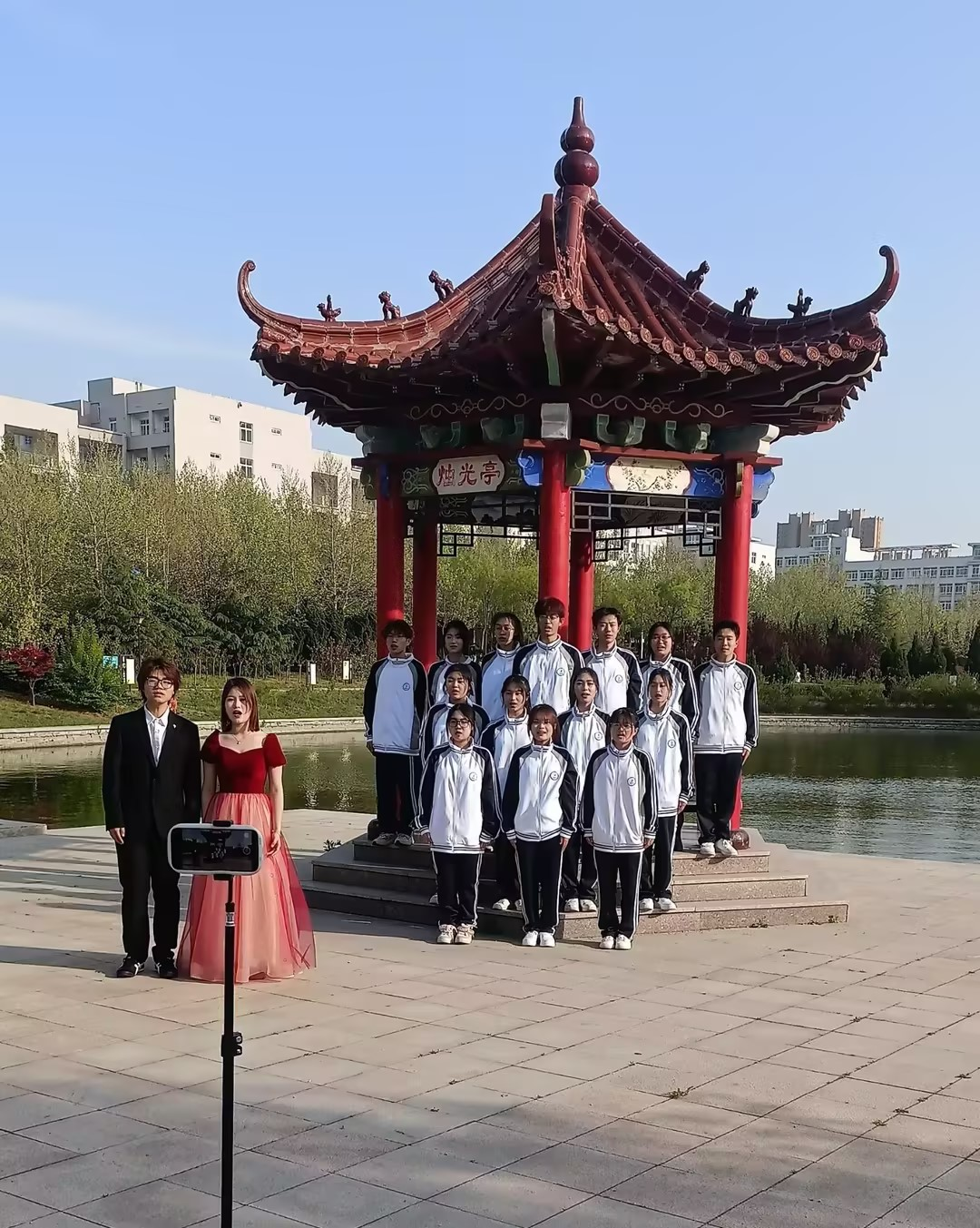 燃“五四”唱青春。学院合唱团队员在青年湖畔合唱《歌唱祖国》,满怀感恩之心和奋斗之志,用歌声抒发了对党、对国家、对人民的热爱和祝福,展现出青年昂扬向上的精神风貌。