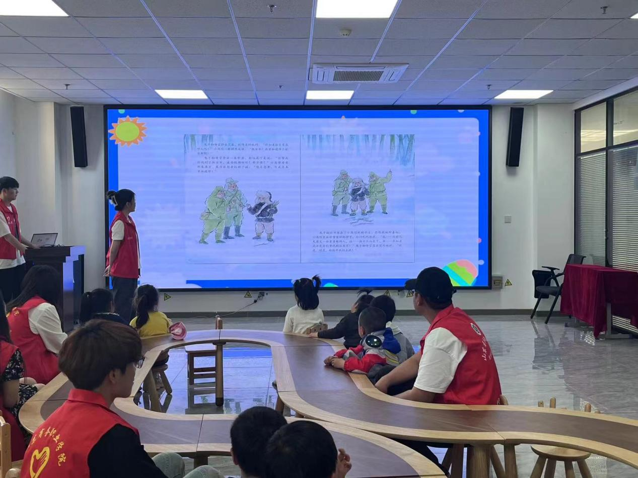 燃“五四”讲青春。学院宣讲团和志愿服务队队员走进社区公益课堂,给社区幼儿开展公益宣讲和志愿服务。通过讲述红色绘本《小马倌》、教学儿歌《红星闪闪》手势舞等方式引领小朋友们感悟红色精神,小朋友们了解了“五四是青年的节日”“要像英雄小马倌一样爱护祖国”,队员们纷纷表示切实体会到传承五四精神,担当时代使命的意义。