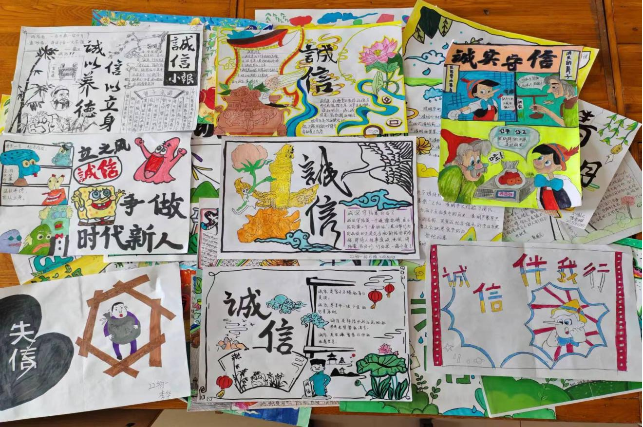 诚信筑梦,手绘青春,传递诚信力量。学院组织诚信主题手抄报竞赛活动,同学们纷纷发挥创意,用文字、图片、色彩等多种形式,展示了他们对诚信的认识。