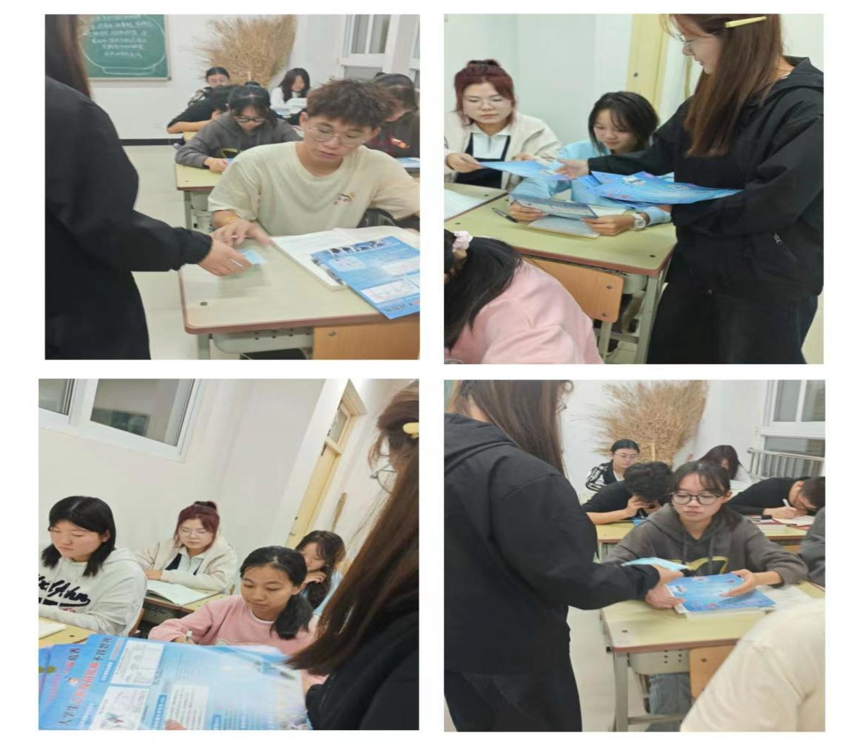 守护青春,普及预防知识。组织志愿者到班级发放宣传单页,向同学们普及传染病知识,提高学生对传染病的知晓率,降低疾病的传播风险,同时向同学们发放口罩,增强了大家的自我防护意识,促进校园健康文化的传播。