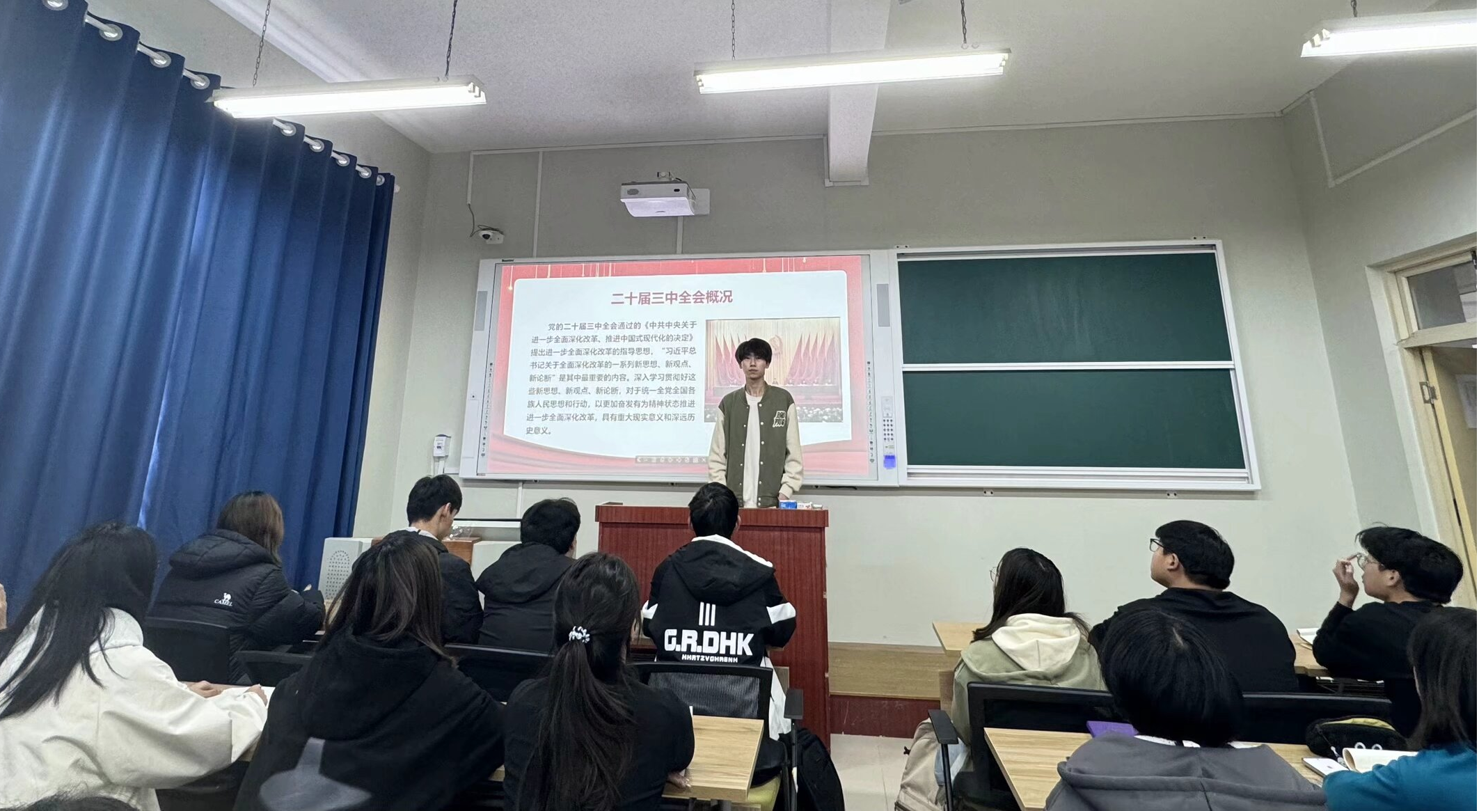 为深入学习贯彻党的二十届三中全会精神,推动全会精神入脑入心、见行见效,推进党的二十届三中全会精神宣讲工作落到实处,经济管理学院由领导班子成员、党支部书记、辅导员、班主任、学生干部组成宣讲队伍,深入班会、团课、宿舍、“一站式”学生社区开展党的二十届三中全会精神宣讲活动。