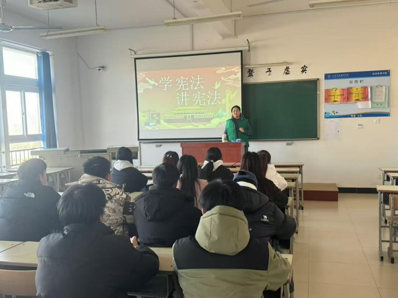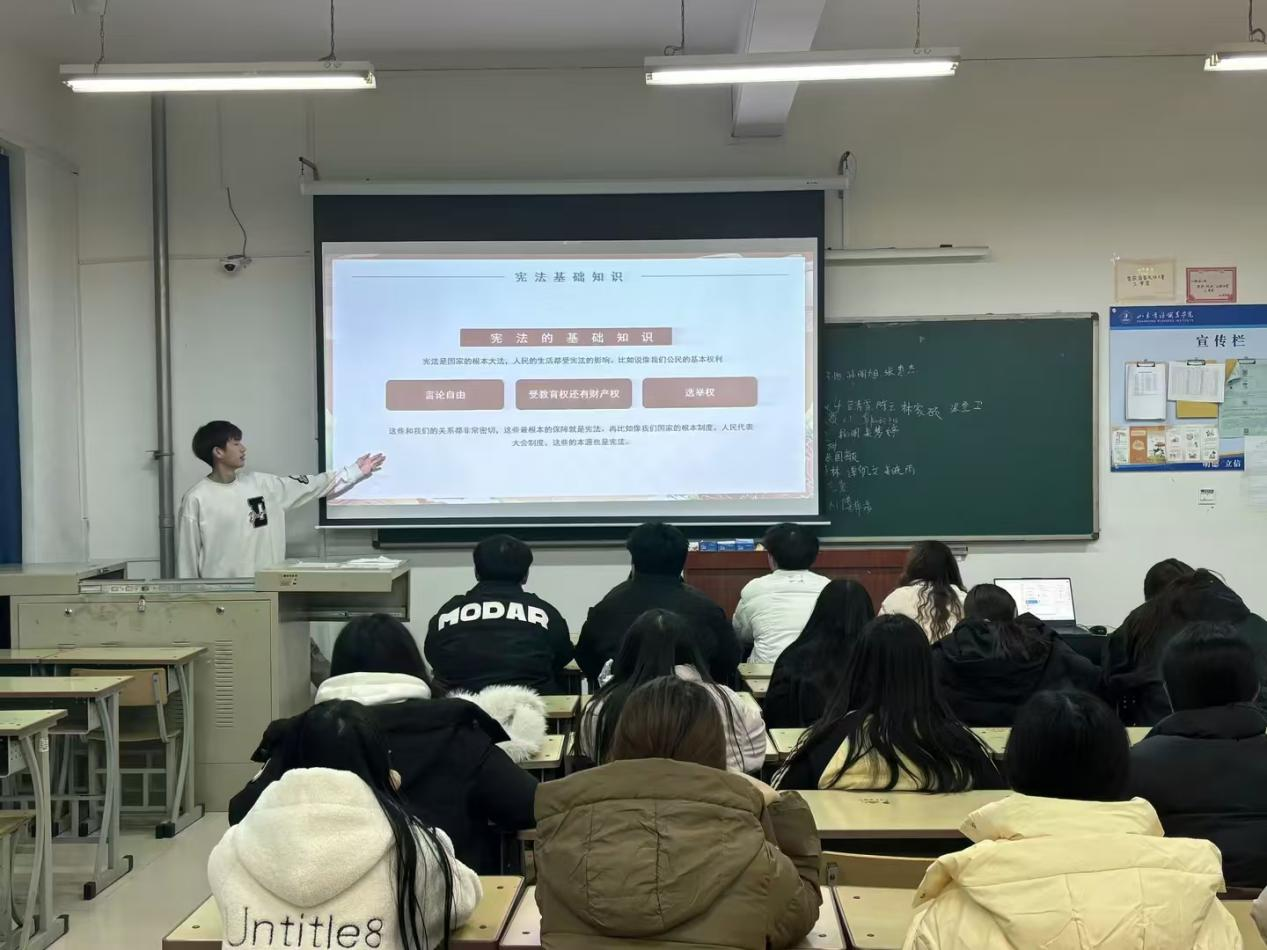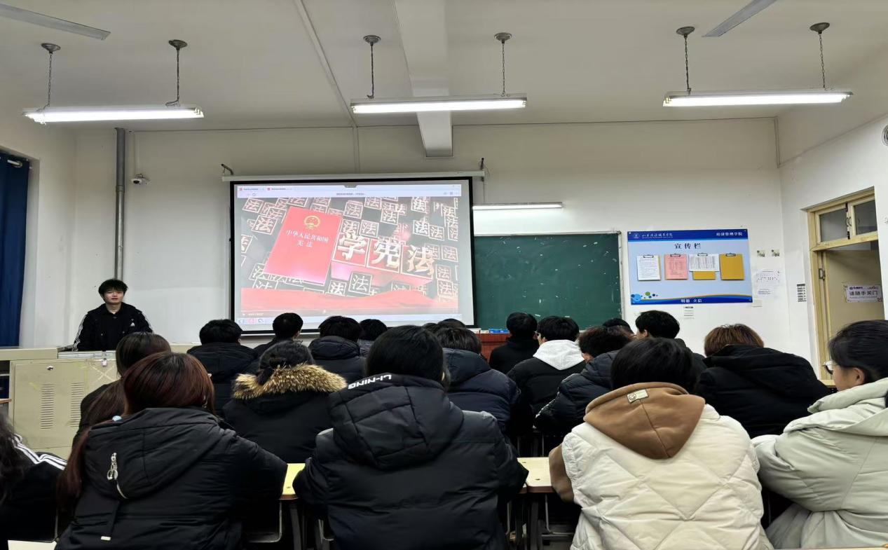 学宪法进班宣讲,朋辈互助学习深化效果。为了进一步巩固宪法学习效果,学院组织了进班宣讲活动。法治宣讲团的志愿者们用通俗易懂的语言、丰富多样的形式,向同学们阐述宪法的重要性。志愿者们通过PPT以及视频展示、互动问答等方式,用生动形象、易于理解且贴近学生生活实际的内容吸引学生,以“同学情”“同窗谊”宣传宪法知识,激发同学们的学习兴趣,强化普法效果。24电商5班的刘亚衡同学表示,活动形式新颖,有趣又实用,希望能多举办此类活动。